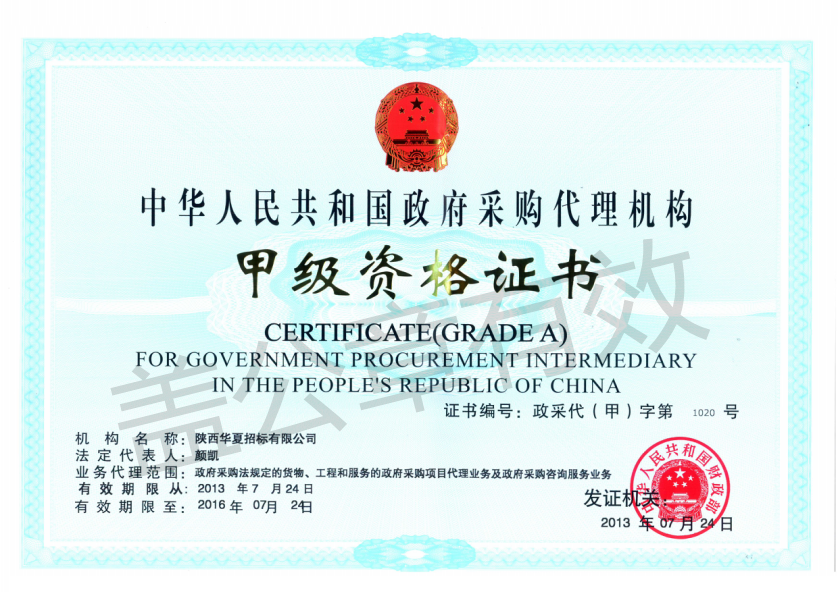 政府采購代理機構甲級資格證書